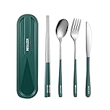 1.Each set of travel cutlery includes 1 pair of chopsticks, 1 spoon and 1 fork,1 table knife 2.Reusable cutlery is made of high-quality 18/8 stainless steel. No rust and no scratches, this cutlery is very safe and healthy for you. 3.Made of high-quality stainless steel, it is not easy to bend or deform after long-term use, is heat-resistant, reusable, and does not rust. 4. reusable silverware for lunch, keep all your tableware healthy and clean. You can take them to work or camp, just put them in your backpack, and of course you can always use them at home. 5.This cutlery set is very easy to clean and can be wiped clean with a kitchen towel after cleaning. Of course, it can also be cleaned in the dishwasher.
