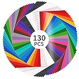 LYA Vinyl 130 Pack Permanent Vinyl - 12 "x12 Self Adhesive Vinyl Sheets,120 Sheets & 10 Transfer Tape Sheets for Cutting Machines and Decor Sticker