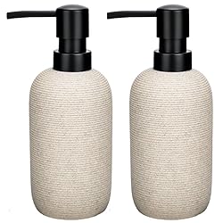 2pcs Hand Soap Dispenser Set - Sandstone Textured Resin Liquid Soap Dispenser for Bathroom & Kitchen Countertop, Matte Beige