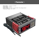 Humidity controller mini and light weight design; large and clear LED display. The temperature on the instruction manual is Celsius, but the product is Fahrenheit. If you find it is not Fahrenheit after testing, please take pictures and send them to us. We will deal with it for you in time. Automatic over temperature alarm; temperature calibration. Wide temperature range (-40~+210℉); dual heating and cooling function. Refrigerating control output delay protection; wiring diagram for installation included. Control temperature by setting the temperature set value and the different value.