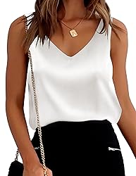Ekouaer Womens Silk Satin Tank Tops V Neck Casual Cami Sleeveless Camisole Blouses Summer Basic Tank Shirt
