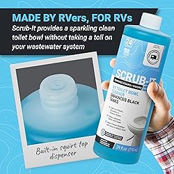 - Enjoy your RV. Leave your RV toilet bowls to us. Enhance your holding tank while cleaning your RV toilet bowl. Make your RV toilet bowls sparkle with Unique Scrub-It, powered by black-tank-enhancing enzymes! Cleaning your RV toilet bowl with traditional toilet bowl cleaners, which contain caustic chemicals and ingredients, will hinder your black tank's ability to break down waste and keep odors under control. With Unique Scrub-It RV toilet bowl cleaner, you can remove stubborn stains, debris, and odors from your RV and boat toilet bowl while boosting your black tank with beneficial bio-enzymatic cleaners, and it enhances septic activity in home and campground systems too. With Scrub-It, you can expect sparkling bowls and a formula that won't harm the beneficial enzymes inside your black tank. One of the essentials for every RV bathroom. 24 uses per bottle, contains no hidden chemicals, best-selling RV toilet bowl cleaner. Thoughtfully formulated and manufactured in the USA for your family and pets without hidden chemicals. Disclaimer: Ingredient disclosures are to the best of our knowledge based upon information provided by our raw material suppliers.