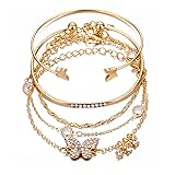 Caiyao 14K Gold Bohemian Layered Stacking Link Chain Butterfly Pendant Honeycomb Bangle Set Rhinestone Bead Bracelet Stackable Animal Cuff Jewelry for Women
