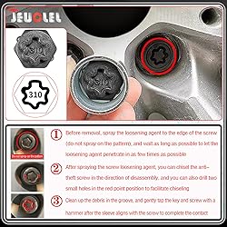 - All-in-one Socket Tool Set The 32PCS Wheel Lock Nut Key Kit is compatible with a wide range of Mercedes Benz and is used to remove and install wheel anti-theft nuts. Save a lot of money if you buy it. But it is not suitable for all Mercedes Benz models, please check carefully whether the thread on the product picture is consistent with the thread on your car tire before purchasing. If necessary, you are welcome to purchase our other set of lock nut socket set tools for Mercedes Benz. 30 Different Sockets This socket set includes 30 different sockets to be compatible with more Mercedes Benz models. The models of the sleeves are: #301, #302, #303, #304, #305, #306, #307, #308, #309, #310, #311, #312, #313, #314, #315, #316, #317, #318, #319, #320, #321, #322, #323, #324, #325, #326, #327, #328, #329, #330. 1 x Adaptor & 1 x Punch This wheel anti-theft socket removal kit includes a 1/2" drive socket adapter for use with sockets. In addition to this, a punch is provided for changing out a different socket for the adapter. High Quality Made of high-quality materials, it is durable, wear-resistant, rust-proof, anti-corrosion and so on. ensure longer service life. And neatly arranged in a blow-molded plastic carrying case, it's quick to ship and easy to store. Service JEUCLEL aims to provide the most professional service so that you can rest assured of our quality. If you have any questions, please email us. We will provide you with the best solution.
