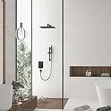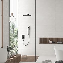 - SPECIFICATIONS<> -Style: Shower System -Body Material: Brass -Finish : Matte Black -Dimension : 12×12 inch -Net Weight : Package Includes<> -1×12” square fixed shower head (304 stainless steel) -1×Multifunction (2 In 1) hand-held shower head with Sprayer (brass) -1×16” shower arm wand (brass) -1× 59” shower hose (stainless steel) -1×shower holder (brass) -1×Shower Faucet Rough-in Valve Body (brass)
