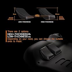 Created for gamers, designed for Steam Deck, NOT compatible with other controller or console Thumb Grips: Made of non-slip sweat free silicone, soft and comfortable, help to reduce hand and thumb fatigue to control. Perfect match with the joystick, can well protect the joystick from daily accidental bumps, dirt or other damage Back Button Enhancement Set: Made of soft rubber with honeycomb hexagon shape and anti-slip texture feature ergonomic arcuated design, adding extra tactile feel and grip improvement; improves the feeling of the back buttons and achieves the anti-slip effect at the same time Molded with accurate size, 2 different thickness available for gamers to adapt different situation and different gaming preferences. Shorten the pressing interval, make it easy to locating buttons faster Quick change for a new upgrade, easy to attach and remove, diverse, stylish, innovative gadget made by gamers for gamers