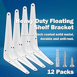 Package Included: 12 Pcs 3x4 Shelf Bracket. Mounting screws M4x30mm, M4x16mm and screw anchors included for each L bracket. Loaded Weight: 20lbs of 1 pair. Solid L Shaped Bracket: Made of thickened steel and white coated finish, the metal angle brackets are rustproof, heavy duty and durable. Easy To Install: Drilling mounting holes and mounting the hollow wall anchors into the holes, the corner shelf brackets can be installed onto the wall with screws included. Wide Application: Perfect for storage and decoration, the wall shelf brackets can be installed in the kitchen, bedroom, bathroom, study room, garage, etc.