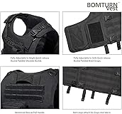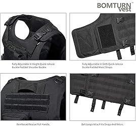 【HIGH QUALITY】Made of 1000D high density nylon, well constructed, with a thick pvc lined nylon, strong tensile wear-resisting ability. The better tactical vest can search B0C2PFXZLP. 【MULTIPLE DUTY & FLEXIBLE REMOVABLE】Carry 3 standard magazine pouches ,1 map and flashlight pouch, 2 communication pouches and 1 medic pouch,all bags are removable and fully compatible with molle system. 【MOLLE MODULAR CUSTOMIZATION】The exterior of the vest is covered in MOLLE for modular customization. powerful molle webbings,strengthen tactical load-bearing; large VELCRO area design for your own style. 【ADJUSTABLE & FIT ADULT】Fully adjustable in girth and height. Adjustable in waist size from 37 in - 51 in (95cm - 130cm). Please note this important size information before placing an order. 【USE SCENES】Target for tactical training, shooting,airsoft & paintball and CS game. 30-Days NO RISK - The best and only you'll ever need. If you are not satisfied for any reason,such as size and any other reason, money back guarantee! QUALITY ASSURANCE: This army vest is a very nice gift. We BOMTURN hope to exchange the lower prico in the market for a good shopping experience for our customers! And if you have any quality problems you can contact us through Amazon, we will be responsible for the end!