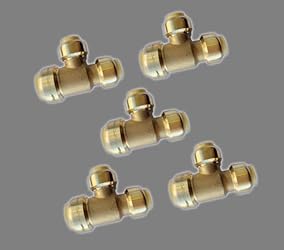 5 PCS 3/4" X1/2"X1/2" Style Push Fit Tee T with Inserts.Quick and Easy to Use! Just make sure you have clean straight cuts on your pipe with no burrs.Certified to NSF-61, NSF-372, ASSE1061, UPCFor use on Copper, Pex, Poly CPVC, or other Tubing that has an OD of 5/8". If you have any questions please contact us through messaging. We will be more than happy to answer all your inquiries