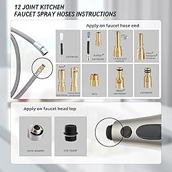 Great Faucet Set: Package included kitchen faucet head replacement + 67 in/5.5 ft faucet hose + 14.1 oz (400 g/0.88 lb) hose weight heavy ball +12 adapters, compatible with American Standard, Moen, Delta, AquaSource, Kohler, Hansgrohe and Grohe (Pfister or Glacier not included). Not suitable for RV faucets, please confirm your faucet type and measure your faucet thread size before purchase Fit for Several Brand: Come with 12 adapters (10 adapters for the hose end and 2 for the faucet top) compatible with American Standard faucet, AquaSourse, Kohler, Hansgrohe, Grohe, Moen, Delta, easily choose one to fit your faucet according to our manual; Please note that it is not compatible with Pfister/Glacier and all type of RV faucets 3 Function Kitchen Sink Sprayer: Includes 3 water modes: stream/spray/flushing, multiple water flow modes are available to flexibly adapt to daily use: Soft Bubble Mode for gently rinsing, Strong Spray Mode for rushing, and the Flusing Mode for scouring the stubborn stains; Easily switch among 3 modes through 2 buttons (the round button is for flushing) Great Quality: This kitchen sink sprayer is made of engineering grade ABS plastic with Brushed Nickel finish, ensuring quality and longevity; Silicone nozzles, easy to clean, good anti- rust, no leaking to save much water and energy; It is also a multi-mesh aerator, no-splash and can fliter out most impurities Easy Installation: Please choose adapter to fit your faucet according to our manual; Everyone is a good plumper