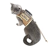 Tactical Cat Harness and Leash for Walking Escape Proof, Adjustable Cat Walking Jackets, Padded Stylish Cat Vest, Khaki, Medium