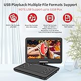 【PROTABLE DVD PLAYER WITH TV COMBO】:New version 14 Inch Portable DVD Player built-in Digital TV ATSC Tuner, enjoy your favorite movies and TV shows whenever and wherever you want !(With Amplified Digital TV Antenna,the number of channels that can be searched depends on your region.) 【MULTIPLE CONNECTION OPTIONS】:Portable TV contans HDMI, USB, AV, Headphone Jack, Digital TV Tuner Cable Connectivity,HDMI allows you to freely use your Firestick or similar hardware to browse thousands of channels,ATSC Tuner and Remote Control make this a potential move TV. 【THREE POWER SUPPLIES】:TV with DVD Player with battery-powered, car charger, AC power adapter three power supplies, you can play anywhere. Built-in 3000 mAh rechargeable battery ensures 3 hours of video playback, enjoy your entertainment longer, home and outdoor use is the optimal choice! 【HIGH-RESOLUTION SCREEN】:Protable dvd player with tv 1366*768 resolution screen with 270° rotation and 180° flip function give you to watch a movie or cartoon clearly from each angle, giving you a better visual experience.Built-in two high-power speakers, which makes the volume louder and clearer. 【SUPPORT MULTIPLE FORMATS】:DVD player protable wide compatibility supports various DVDs formats includes:DVD, DVD+R, DVD-R, DVD+RW, DVD-RW, CD, CD+R, CD-R, CD+RW, CD-RW, VCD to SVCD (Not support Blu-ray disc). Up to 32GB USB are supported,video formats only support MOV/AVI/MP4/VOB/FLV/MKV/TRP/TS/MPG/MPEG /DAT/ASF/WMV.