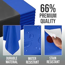 - Elevate any event with this 48-pack of dark blue table cloth bulk, perfectly sized at 54" x 108" to fit standard and 8 ft table cloth round table setups. These dark blue table cloth round table plastic covers provide full coverage and a sleek look for weddings, birthdays, picnics, and more. Made from high-quality, waterproof material, each dark blue plastic tablecloth is durable, tear-resistant, and easy to use. Whether you're dressing up a folding table, picnic table, or dining table, these disposable table cloths offer both elegance and convenience. Simply cover your table, enjoy the event, and toss when done. ideal for fast cleanup. Perfect for use as a round plastic tablecloth, dark blue tablecloth for round table, or party table cloths disposable, they protect your surfaces while elevating your decor. Great as table covers for 8 foot tables, round tablecloth plastic, or table cloths round, they suit any indoor or outdoor occasion. These plastic table cloth round table options work beautifully for formal dinners, casual barbecues, or themed parties. Whether you call them disposable table cloth round table, round table cloth, plastic cover for table, or tablecloth round, these wholesale tablecloths in bulk which are dark blue table cloths bulk delivers unbeatable value. Add style and protection to every event with these versatile, easy-to-use, and super sleek dark blue round tablecloths—a must-have for your party supplies collection.