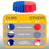 Includes: This 48-pack of dark blue round tablecloths plastic measures 84" fitting round tables up to 6 feet long. Whether you're looking for plastic table cloths bulk, picnic table covers or dark blue table cloth round table, these disposable table covers round are sure to meet your party needs. Quality: Each dark blue plastic table cover is made from thick, waterproof plastic that resists tears & protects from spills. These heavy-duty plastic table covers are great as outdoor tablecloth as well as indoor disposable tablecloth, making cleanup a breeze and protecting your dining table from any party mishaps. Modern Design: Add style to any setup with these sleek dark blue plastic table cloth disposable, perfect for creating a modern look. This plastic round tablecloth disposable blends beautifully with your party decorations. Use them as elegant dark blue table cloths for weddings, events, or birthday celebrations. Easy Clean Up: Say goodbye to laundry with these Dark Blue disposable tablecloths—just cover your table, celebrate and toss when done. Ideal for large events, each Dark Blue plastic table cloth helps reduce cleanup time while keeping your table spotless. Great plastic tablecloths for round tables for any host in need of easy-to-use party supplies. For All Occasions: From weddings and birthdays to holidays and barbecues, these Dark Blue outdoor table covers for parties are made to fit any event. Stock up on reliable bulk plastic tablecloths round for effortless style and protection. A party must-have for those needing durable table cloth bulk table covers for 8 foot tables.