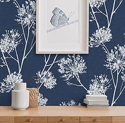 - Abundant in nature and nostalgic in mind, these stylized dandelions are waiting to be wished on and whisked away in this One O'Clocks pre-pasted wallpaper pattern by Seabrook Designs. The feathery, white botanicals contrast with the faux denim backdrop for a sophisticated design guaranteed to make all your interior dreams come true. Printed on pre-pasted, acrylic coated paper, the wallpaper easily adds character to your well-decorated space without the hassle of wallpaper paste.
