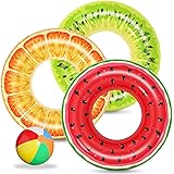 Jasonwell Inflatable Pool Floats Kids - 3 Pack Floaties Pool Tubes Swim Rings Fruit Water Floaty Watermelon Kiwi Orange Inflatable Pool Toys Float for Swimming Pool Party Lake Beach Kids Adults