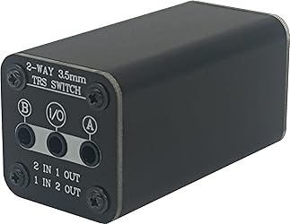 SPRODIO 2 Port Stereo 3.5mm Audio switcher selector Box Passive 1/8 TRS A/B Switch with Ground Switching MD21
