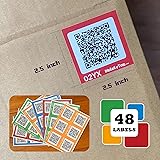 QR Code Labels for Storage, Organization, Moving - 48 Unique Scannable QR Code Stickers - Compatible with iOS, Android, and Web - Color Coded - Pack of 48