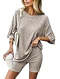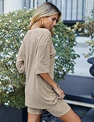 FEATURES: 2 Piece Lounge Sets, Skinny ribbed pajama sets, Crew-neck oversized matching outfits sets, Short sleeve drop shoulder T-shirt, High Waist biker short bodycon pants, Variety Color for choice MATERIAL: Super lightweight, comfy, and stretchy ribbed fabric. High elastic and roomy designs are forgiving for anybody. Great for maternity postpartum belly too OCCASIONS: Perfect as a cozy pajama sets, ribbed lounge set and maternity outfit sets. Suitable for Daily, Street, Clubwear, Party, Casual , Hip hop, Music Festivals, Outdoor, Workout, Fitness, Running, Jogging, Date and etc MATCH: Oversized Tops can easily match with skirt, leggings, skinny pants, jeans or also pajama. Biker shorts can be worn with all t-shirts for a casual look. 2 pieces sets match with sneakers, sports shoes perfectly SIZE & PACKAGE:You could choose size according to the pj shorts as t-shirt top is oversized style. 2 pieces sweatsuit set including a matching same color sweatpants that make a beauty of coordination which is on trend