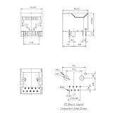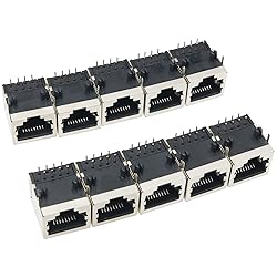 - Material: high quality plastic, metal Total number of pins: 8 Position: Right angle Color: Black Dimensions: 16mm x 15mm x 13mm (L x W x H) Package contents: 10PCS RJ45 printed circuit board jacks The PCB RJ45 modular jack is easy to solder, suitable for standard network RJ45 cables, widely used in home or office network systems.