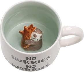 Szoyeay Sloth Ceramic Cup Hidden 3D Animal Inside Mug,12 oz Cute Cartoon Handmade Figurine Mugs,Christmas Birthday Surprise for Friends Family or Kids (Sloth)