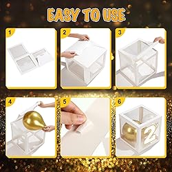 - Graduation Box Decorations with Balloon and LED Light Strings Congrats 2026 Grad Party Supplies Proud of You Balloon Boxes for Class Of 2026 Class School College Party Decorations Supplies, 44 Pieces Features: Graduation decoration: The decorative [proud], [of], [you], [2], [0], [2], [6] and 1 shape of graduation hat cardboard in the set are designed for this year's graduation event, adding light strings and foil balloons can make the balloon box more eye catching. Easy to use: This graduation balloon box set includes 4 transparent boxes, 8 pieces of decorative cardboard, 30 pieces of latex balloons, 5 pieces of confetti balloon, and 4 pieces 3.28 feet/ 1 meter long warm white LED lights string, you can easily build a beautiful graduation party decoration, leave good memories for people. Specifications: Material: cardboard paper, PVC, latex, copper wire Color: as the picture shown Sizes: Box: 11.81 x 11.81 x 11.81 inches/ 30 x 30 x 30 cm LED wire light: 3.28 feet / 1 meter in length Package includes: 4 x Transparent balloon boxes 4 x LED copper wire light 30 x Latex balloons 5 x Confetti balloons 1 x Silver ribbon Notes: Please allow a little error on the size due to manual measurement. The color might exist slight differences due to different displays. Please keep the balloon away from pointed objects, heat or fire resources. And do not over inflate the balloon to avoid bursting