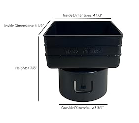 HIGH QUALITY: Our Universal Downspout Tile Adapters are perfect to complete the transition from a rectangular downspout to your drain tile. - Proudly made in Iowa U.S.A.! US PATENTS: USD776796S, USD761397S, USD780893S EASY USE: Connect downspouts to any round drainage pipe. Flexible tabs make it easy to secure into your drain pipe - Will fit 4"x4" downspouts. Adapters are slightly oversized for an easier install! UNIVERSAL FIT: Universal fit for use with 4-inch pipes, black corrugated, PVC schedule 40, SDR 28 & 35 sewer pipe. SIZES TOP INSIDE DIMENSIONS: 4 1/2" X 4 1/2" BOTTOM OUTSIDE DIAMETER 3 3/4" SMART DESIGN: Wide collar hides end of drain pipe. Choose from white & black to compliment your gutter & drainage pipe!