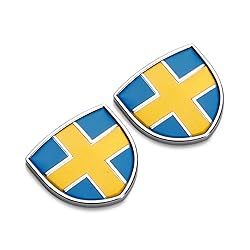 - 2pcs Swedish Flags Sweden Cross Flag Logo Shield Shape Car Fender Side Left And Right Metal Sticker Decal Emblem 38x38mm