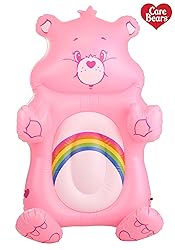 - Dive into the world of pool stuff with the Cheer Bear Pool Float, your ticket to a summer filled with joy and relaxation. This adult pool float is not just a simple float, it's a vibrant, playful addition to your pool that promises endless sunshine and laughter. Among large pool floats for adults, this one stands out with its robust vinyl construction and impressive size of 70 inches in length and 45 inches in width. These floats for pool floating for adults are designed for maximum comfort and stability, making your pool time a breeze. This floaty for adult is adorned with printed graphics of Care-A-Lot's most jubilant inhabitant, Cheer Bear, making it more than just a pool accessory. Inflatable rafts for adults have never been this fun, who could resist the allure of floating on a cheerful bear all summer long? This floaty comes with an official license, assuring you're purchasing a quality product that respects the cherished Care Bears brand. By choosing this raft, you're opting for a product crafted with meticulous attention to detail and authenticity. In essence, the Cheer Bear Pool Float is an inflatable raft that is more than a pool accessory, it's a summer necessity. It blends fun, comfort, and quality into one cheerful package, making it the perfect addition to your collection of bears.