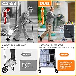 - RXUJYC large Shopping Cart for Groceries, 280 lbs Heavy Duty Grocery Cart on wheels with 360 Swivel Wheels, Waterproof Liner, Portable Foldable Utility Carts Carro de Compras Shopping Carts for Seniors,Laundry,Transport, Luggage , Travel (Black) Features: 1.Euipped with large removable waterproof shopping liner 2.Upgraded Intensive Mesh Bottom and reinforce bar 3.Newly Sturdy Low Carbon Steel Construction 4.Durable Larger Rubber Wheels and Better Maneuverability 5.Easy to Assemble and Foldable Design to save space Specifications: Material: Alloy steel Color: Black Size: Large Product Size: 22.8*21.2*36.2 inch Product Weight: 12 lbs Product Package Size: 39.2*20.5*3.5 inch Product Package Weight: 15.4 lbs Package Including: 1 x Utility cart frame 1 x English User Manual 1 x Waterproof liner 1 x Long axes 2 x bag of assembly parts 2 x Front wheels 2 x Rear wheels