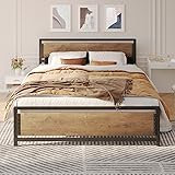 INDUSTRIAL STYLE: The bedstead has a rich retro-industrial style. The combination of simple black metal and vintage wood grain with rivet, without too much decoration, will make the room appear more textured. There are 2 rustic colors for your choice IDEAL SIZE: The standrad full or queen Size bed platform can perfectly fit your same size mattress. Solid iron slats are designed to support and extend the life of your latex, memory foam or innerspring mattress without the need for a box spring UNDER-BED STORAGE: The 11 inches under-bed space is perfect for storing clothes, towels, toys, and other extra odds and ends. It is relatively easy to clean since the sweeper can come and go freely to help maintain a spick and span bedroom environment NOISELESS AND PROTECTIVE DESIGN: The non-slip thick square metal frame and sponge strips on the central support bar help minimize noise, allowing you to enjoy peaceful and sweet dreams. Silicone feet and smooth corners are designed for your safety STURDY AND DURABLE: High-quality MDF board with waterproof and anti-scratch surface, strong metal slats and 9 independent support legs can hold up to 800lbs capacity. Suitable for home bedroom, hotel, hostel, B&B guestroom, and other occasions