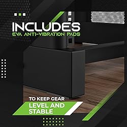GEARit 12U Equipment Rack With Flat Top - This combination rack and workstation fits up to 12 units of 19 studio gear and networking hardware, plus extra desktop space on the oak-colored top for holding mixers, laptops and other AV necessities. Perfect for adding capacity to home setups and professional studios. Double-Duty as Studio Furniture - Space is at a premium in any recording or production studio. To help you use your workspace effectively with room to breathe, this all-in-one compact workstation includes both the 12U equipment rack and a spacious desktop that fits mixers, laptops, notebooks, drum machines and more. 12U Rack for Audio, Video and Networking - Level up to pro-grade production gear or expand your ever-growing collection with this steel rack cabinet. Supports up to 12 units of 19-inch equipment, the standard size for professional audio and networking gear including compressors, preamps, FX units, converters, servers and more. Steel Construction for Your Valuable Gear - The best studio hardware is made to last a lifetime when you take care of it, so place your gear in a purpose-made studio rack, built with black-finished steel, heavy-duty joints and a design that fits well into any studio. EVA Anti-Vibration Pads Included - In the box are optional EVA pads that attach to the bottom of your workstation rack, to keep the feet from sliding on wood floors while also absorbing vibrations and cushioning delicate items like opto compressors and tube electronics.