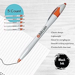 [5 count ballpoint pen with Bitcoin logo design] ★ a collection of five high-quality ballpoint pens that feature the iconic Bitcoin logo on their exterior. [Perfect gift for any Bitcoin enthusiast] ★ as it allows them to share their love for the cryptocurrency in a practical and everyday way. Makes for a great conversation starter with colleagues, friends, or strangers. [Black ink pen] ★ provides a classic and professional look. Easy to read and versatile for a wide range of audiences and tasks. [Smooth writing experience] ★ write without interruption, ensuring a smooth and seamless writing experience. [Lightweight] ★ durable yet lightweight barrel will help reduce hand fatigue and ensure a comfortable writing experience.
