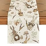 Artoid Mode Bunny Rabbit Eucalyptus Eggs Carrots Easter Table Runner, Seasonal Spring Kitchen Dining Table Decoration for Home Party Decor 13x72 Inch