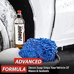 Torque Detail Decon Wash Pack - Decontamination Soap 8oz + Wash Mitt - Surface Strip Wash Car Shampoo - Highly Absorbent Microfiber Chenille Car Wash Mitt Safely Cleans Your Vehicles Entire Surface