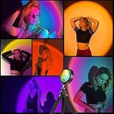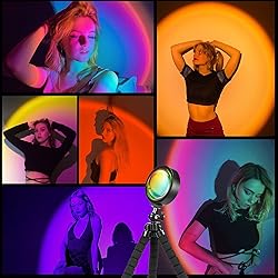 - Features Sunset/rainbow projection lamp, Perfect for studio, ambient light, background dimming, personal/objects/scenes photography, etc. Not only 16 colors, countless colors on the APP for your choice When the APP remains in the Microphone Rhythm page, play music on your phone or stereo, the app microphone captures the playing music, and the light will flash with the playing music. The light casts a striking colorful circular light on the walls, ceiling and floor. The angle of the lamp head can be adjusted and can be rotated 360 degrees forward and backward. The lights can flicker to the music when you select music mode on the APP! With it, you can create a dynamic party atmosphere! 5V 5W USB power supply, cable with switch, USB cable 1.5 meters long. The farther the distance, the larger the projection, which can be projected on the wall or ceiling. Specifications Produvt Name: HugoMova Sunset Lamp Projector Material: high-quality aluminum alloy + PVC + LED lights Height: 10inch Input Voltage: 5V Package Dimension: 7.8 x 5x 1.6in Please Note: Actual color may be slightly different from the images due to different camera and light effect. PACKAGE CONTENTS: 1 x SunSet lamp + remote control 1 x Manual (The QR code for the iStrip APP is on the manual ) Notice: Power Charger not included