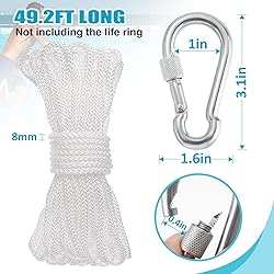 Package Included: You will receive a water floating lifesaving rope (Not including the life ring) with a length of 49.2 feet, a diameter of 8mm, and a snap hook attached to one end. It has a tensile strength of 440 lbs and can be used as a water rescue line or as an emergency anchor line on small boats. Durable Safety Material: The floating lifesaving rope is made of polypropylene material, which is lightweight, easy to throw, and easier to float on the water. The stainless steel snap hook is resistant to seawater corrosion, will not rust, and is safer and more reliable than galvanized buckles. Easy to Use: One end of the water floating rope should be tied to the object to prevent it from being washed away, and the other end should be tied to the shore, or hooked with a snap hook(see the picture for the detailed size of the snap hook). You can make the rope more secure by tying knots. Suitable for You: Our boat anchor rope is particularly suitable for those with a pool at home, public pool managers, lifeguards or water sports enthusiasts. It uses the 8mm hollow braiding technique and can be used outdoors for up to six months without you having to worry about it falling apart easily. Multiple Uses: You can put the outdoor professional throwing rope on the swimming ring and throw it out as a lifebuoy in snorkeling, swimming, fire rescue and flood control, or you can use it as an anchor rope for small boats, such as kayaks, inflatable valves, motor boats, etc.