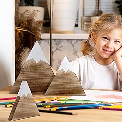 Farmhouse Mountain Nursery Decor: the package comes with 3 pieces of wooden adventure mountain table decor centerpieces in triangle shape, full of retro and farmhouse style, adding a splash of color to your home Size Details: wooden mountain decors for farmhouse are available in 3 sizes, namely about 6.61 x 7.01 inches/ 16.8 x 17.8 cm (H x W), 5.51 x 5.75 inches/ 14 x 14.6 cm (H x W), 4.53 x 4.53 inches/ 11.5 x 11.5 cm (H x W), the thickness of them is about 0.79 inches/ 2 cm; You can decorate mountain wooden signs in different ways as needed for the same occasion, and each stand will have an ideal presentation when placed on the table in different views Nursery Signs: the wooden mountain decor is designed with dark brown wood grain with white snow, creating an overall vintage effect, this mountain wood art complements the nursery, woodland animal decors or baby items Reliable and Safe Material: farmhouse mountain nursery decor is made of quality wood, reliable and serviceable, fine workmanship and delicate appearance, no pointed edge or burs, which can retain its color and shape after a long time use Wide Range of Decorative Occasions: rustic woodland adventure decor can be applied for shelves, tables, and is suitable for decorating your bedroom, children's room, living room, playroom, nursery, kindergarten, study, and more, adding a rustic atmosphere to these places, while giving you an inspiring and fresh feeling