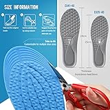 【SHOCK-ABSORBING & ANTI-SLIP】: The inserts adopt cushion pad on the heel, make it softer and more comfortable to walk. The contoured biochemical heel cup fit shoes better and would provide better motion control while walking or running. 【SALIENT POINT FOR FOOT MASSAGE】: There are massage point on the forefoot insole. These points can massage your feet and promote blood circulation. At the same time, the insole is very soft and will not hurt the foot, help to balanced force, more comfortable walking. 【COMFORTABLE & MULTI-USE】: Suitable for all seasons and all kinds of shoes. This insole is available all year round, very soft and comfortable replacement insole. It can be use for running shoes, work shoes, climbing boot, work boots or for casual shoes. 【BREATHABLE & Light】Mesh fabric and foam's strong adsorption reduces odor and keeps your feet fresh and comfortable. 【FREE CUTTING】: The insole's size can be cut according to your shoes, in the back of the insoles have a clear cut line. It can be freely cut according to shoe width, bring you convenience.