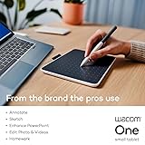 - The Wacom One drawing tablet helps the digital arts beginner or visual thinker illustrate, edit images, or design with a natural feel of pen and drawing paper while providing advanced digital capabilities. Whether you're sketching, painting, creating animations, or communicating your ideas, this small (7.4" x 5.55" x 0.31") Bluetooth drawing pad helps bring your artistic visions to life. Featuring a thin and light design, this creative pen tablet is perfect for anyone with creative dreams but limited desk space. Built-in Bluetooth allows you to enjoy the convenience of wireless connection to your computer - or connect the digital drawing tablet to your computer with the included USB-C cable. Our drawing pad works with Windows PC, macOS, Chromebook, and Android devices, and comes with the battery-free Wacom One pen. With 4,096 levels of pressure, the cordless One pen can be customized to your liking with 2 programmable buttons, has no parallax, and virtually no lag for a smoother workflow. Our pen's Electro Magnetic Resonance (EMR) tech draws power from your tablet, meaning you never need to charge it. The computer design pad is a great option for students and aspiring artists seeking an entry-level drawing tablet with stylus type pen. Level up your digital art skills by creating comics, manga, concept art, illustrations, fashion design, photography, video editing, motion graphics, and more.