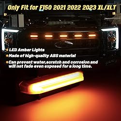 ►1.Fitment: LED Grille light kit is designed specifically to work with the Bronco OEM grille found on Only Compatible with F150 XL/XLT/XLT Sport Series Factory Grill 2021-2022( Not fit the STX/Limited/Lariat/King Ranch/Platinum) ►2.Function:This LED grille lights will bring your car a whole new look. Improve safety on the road.Amber shell yellow grille light is the best lights you can have for snow trails or at night or in foggy night. ►3 INSTALLATION:This item was designed specifically for F150 grille,No cutting, drilling or any modifications needed.All you need to do is connect the harness to the DRL, and the whole process takes less than 30 minutes to complete. ►4.Package Include:Amber shell amber lights * 5+ wire harness*1. Any questions, you can contact us by email. ►5.High-quality:Made of High-quality ABS material, can prevent water, scratch and corrosion and will not fade even exposed for a long time. Amber shell makes the light more refin
