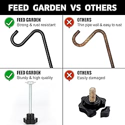 Premium Quality: These deck hooks are crafted from strong heavy duty steel, which is more sturdy and not easy to deform. The black powder coating on the surface makes the deck hangers for railing anti-rust and will last for a long time, which also makes them can be used in any weather. Size: Length of this deck railing plant hanger is 14 inch. The top length of the clamp is 3 inch. Bottom length of the clamp is 1.9 inch. Height of the clamp is 3.3 inch. Diameter of the steel pole is 0.32 inch. It is suitable for different horizontal splints and railings. The applicable thickness is from 1 inch to 3 inch. The maximum bearing capacity of the deck hooks for railing is 25 lbs. Practical Functions: Best choice for your porch, garden and balcony. You can hang flower baskets, bird feeders, bird houses, wind chimes, lanterns and Christmas decorations by the deck railing plant hanger. Modern style of the deck plant hangers for railing stunningly complements anything that hangs from it, adding beauty to your home. No Assembly: You needn't assemble metal poles and adjust these deck plant hangers by tightening or loosening the knob, which makes it suitable for different thicknesses of railings. These deck bird feeders are easy to assemble and there are no tools are needed. About Us: FEED GARDEN provides premium quality products and great after-sales service. If you're not satisfied with our deck bird feeder, please contact us, we will provide you with a solution as soon as possible.