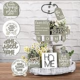 FairySandy 11 Pcs Home Tiered Tray Decor Spring Rustic Farmhouse Tiered Tray Decorations Set Sage Green Wooden Home Sign Vintage Farm Animal Farmhouse Tabletop Wood Sign for Kitchen Table Shelf Decor
