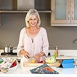 【NATURAL ECO-FRIENDLY INGREDIENTS】: Our Beeswax food wraps are made from 100% natural and organic materials: Organic cotton, organic jojoba oil, Natural beeswax, and natural tree resin. These wraps are all certified with European LFGB, the fabric is GOTS certified and the packaging is made from 100% recycled paper. These wraps are sustainable and natural alternatives to plastic wraps for food. 【MULTIPLE SIZES FOR A SET】: This set come with 9 Packs Beeswax Wraps to wrap everything you need: 5 Small(7.5x7.5"), 3 Medium(11.5x11.5"), and 1 X-Large(14.3x14.3"). Different designs and sizes can cover different foods or bowls. It's great to wrap food leftovers or food you take to the picnic, your office sandwich, in kids lunchboxes or to store well for your fresh produce, fruits, snacks, cheese, bread, sandwiches, nuts and more! 【DURABLE AND LONG-LASTING】: Unique self-adhesive design & double coating make our wraps more durable and long lasting. Our beeswax food wrap provides enough tackiness for food sealing to keep fruits, vegetables and sandwiches fresh. Helps keep food fresher and more hygienic for longer. 【REUSABLE & WASHABLE】: Use the warmth of your hands to soften the wrap and form over a container or foods. Wash in cool water with mild soap and air dry then use again. Our high grade beeswax food wraps will last up to a year with regular use. Keep food wraps away from heat and don't put in the dishwasher. Our reusable food wrap is biodegradable, sustainable and washable. Say goodbye to plastic wrap and cling wrap, and it's a great addition in your eco-friendly kitchen items. 【GREEN LIFE】: It's never too late to promote a plastic-free life with these Eco-Friendly beeswax wraps. The reusable wrap is a sustainable product that is good in quality and easy to use, also fine for the environment. Ideal for an organic lifestyle and a healthy food lifestyle. Also it’s a good gift for your family or friends to protect our earth!