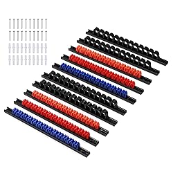 This set includes 13.58 inches x 6 pieces screwdriver rails with 13 red clips, 13 orange clips and 13 blue clips, 4 pieces wrench rail with 52 black clips, each rail length is 13.58inch. Rugged and durable materials: All rails made of high-quality materials and clips made of high-strength plastics are strong enough to hold your tools firmly and use them for many years. This wall mounted wrench organizer holds your set of wrenches with efficiently designed clips that you can take your wrench easily and quickly. Easy to use in various scenarios:You can put this product in your toolbox, hang it on the wall or hang it on a stand in the studio.These clips of different sizes can help you fix many different kinds of tools. The cleverly designed clips can let you put the tools in the clips without worrying about the tools falling. The screwdrive & wrench holder can help organizer your toolbox to save your space, AND no need to worry about a cluttered work area or misplaced tools again.