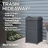 Suncast 33 Gallon Wicker-Style Hideaway Trash Can with Secure Latching Lid and Weather-Resistant Construction for Patio, Cyberspace Grey, Made in the USA