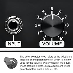 - About the product: The potentiometer knob refers to the twist knob installed on the potentiometer, which is mainly used for the volume. Widely used for 6mm Diameter Shaft, Volume Control Knob, Audio knob, Guitar Knob, and so on. Good choice for you: The potentiometer volume switches control knob is assembled on the potentiometer, which is more convenient to rotate. Specification: Material: Plastic Shaft Hole Diameter: 6.4mm/0.25" Size: 19 x 14mm / 0.75 x 0.55" (D*H) In the package of: 4 Pack x Potentiometer Rotary Knobs Easy to install: You just need to insert the potentiometer directly. Fast and convenient installation fastening, smooth rotation, positive rotation. Tips: Please kindly note that the potentiometer is not included here.