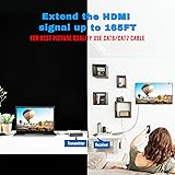 ✅ 1080P 60Hz Up To 165Ft – Extend your full HD 1080P HDMI signal up to 165ft. over a single Cat5e/6 cable with zero video latency. Note: For full 165ft., make sure to use Cat6/7 LAN cable ✅ 6.75Gbps Data Transfer Speed – Supports HDMI 1.4, HDCP 1.4 compliance, deep color 36-bit, and digital audio signals such as Dolby TrueHD, Dolby Digital etc. (if EDID is copied from the right devices) ✅ Power over Cable (PoC) Feature – Reduce the clutter of cables and using multiple wall outlets with the PoC function. Only 1 power is needed, and can be connected to the transmitter. Receiver is powered by the connected ethernet cable ✅ Optimize Your Performance – For best picture quality, stability, and long-distance transfer, we recommend using CAT 6 or 7 cable. For optimal performance, use the J-Tech Digital Customized Cat6 Ethernet cable. Different cable lengths are available ✅ Free Lifetime Technical Support – All J-Tech Digital products include a one-year manufacturer replacement warranty and free lifetime technical support from our customer support team located in Stafford, TX. Support is available from 9AM – 6PM CST, Mon – Fri
