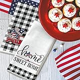 WHAT YOU WILL GET: 4 pack dish towels in different designs, featuring the theme of Independence Day, unique and delicate, which will brighten up your home and kitchen. PATRIOTIC DESIGN: 2 packs take white and black buffalo plaids as background, the other 2 packs are bordered with buffalo plaids, patterned with star, truck and festive words, delicate and will better convey your nation pride. DURABLE MATERIAL: Made of good quality microfiber, soft and skin-friendly, reusable and can be used for a long time, our kitchen towels are suitable for washing dishes, bowl, cups, cutlery, etc.. MEASUREMENT: Each kitchen towel is 45 x 70cm/18 x 28 inch, large enough to help you tackle all drying and cleaning tasks in kitchen, very practical and useful. WIDE APPLICATION: Wonderful dish towel for dishes, bowl, cups and cutlery, good choice for cleaning restaurant tables and wiping dust from furniture; great decoration for tea cups as tea towels and can be used as a gift for 4th of July, Memorial Day, Veteran's Day, housewarming and other occasions.