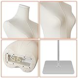 GREAT FOR DISPLAY: Our mannequin can display your products in a window, on a counter, on a tiered display shelf, or on the floor. Golden metal bracket and solid base can support heavy weight clothes, garment, wedding gown and decorative material. THE STANDARD MODEL BODY: The dress model has perfect figure. The dimensions for each part of the mannequin: chest 33''; shoulder 15"; waist 26.4"; hips 32.7" . Our dress form is great for Clothing Store displays, photography and home decor. DURABLE & SOLID CORE STRONG: The inner core is made of tough thick plastic. The Linen Fabric layer are designed to hold pins. Pins need to be inserted at an angle. Metal base has good stability, dirt resistance and easy to take care of. ADJUSTABLE HEIGHT: Our dress form has an adjustable knob. The mannequin torso height can be adjusted from 50” to70”. It is perfect for various types of garments. EASY TO ASSEMBLE & DISASSEMBLE: You can complete the assembly or disassembly in minutes without any tools.